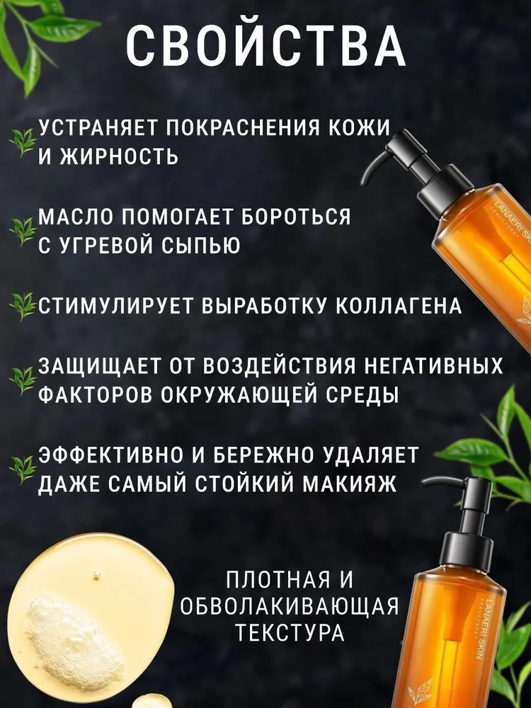 Представляем вашему вниманию гидрофильное масло, которое эффективно удаляет остатки макияжа, включая водостойкую профессиональную косметику. Оно не только очищает кожу, но и не закупоривает поры, нормализуя состояние жирной и проблемной кожи. Наше гидрофильное масло для умывания обладает противовоспалительными, антисептическими и противобактериальными свойствами. Оно способствует быстрому заживлению воспалений и раздражений кожи, регулирует работу сальных желез и снижает выработку кожного жира. Кроме того, оно эффективно устраняет жирный блеск кожи и матирует ее. Наше масло содержит ценные ингредиенты, такие как масло черного чая, которое помогает справиться с покраснением и жирностью кожи, борется с угревой сыпью, стимулирует выработку коллагена и защищает от негативных факторов окружающей среды. Масло оливы способствует ускорению процесса регенерации и смягчает кожу, а масло розы обладает омолаживающими свойствами, повышает упругость и эластичность кожи. После использования нашего гидрофильного масла ваша кожа будет выглядеть чистой, подтянутой и молодой!