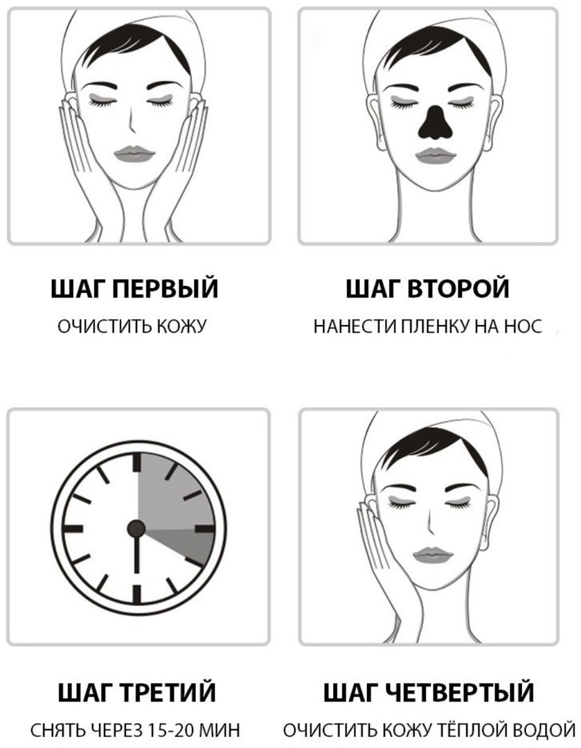После очищения лица желательно разогреть его горячим полотенцем 3-5 минут,нанести маску равномерно на распаренную кожу избегая области вокруг глаз и губ, подождите 10-15 минут, чтобы она высохла. Снимите высохшую маску снизу вверх и увидите как черные точки вместе с омертвевшей кожей остаются на самой маске. Остатки маски смыть. Использовать не более 3 раз в неделю.