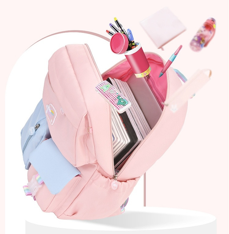 Ранец детский для девочек имеет дополнительные карманы, оснащен надежной фурнитурой и анатомическими мягкими лямками , которые регулируются под рост школьника и не дают спине уставать. Верхняя эргономическая ручка мягкая и позволяет легко переносить школьный рюкзак в руках.