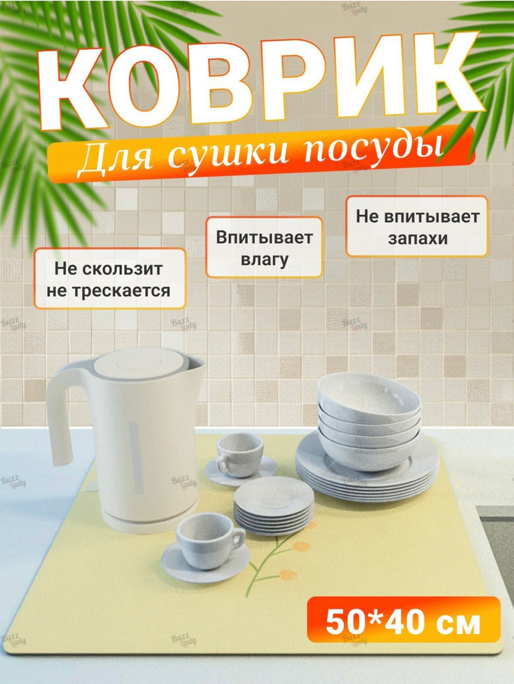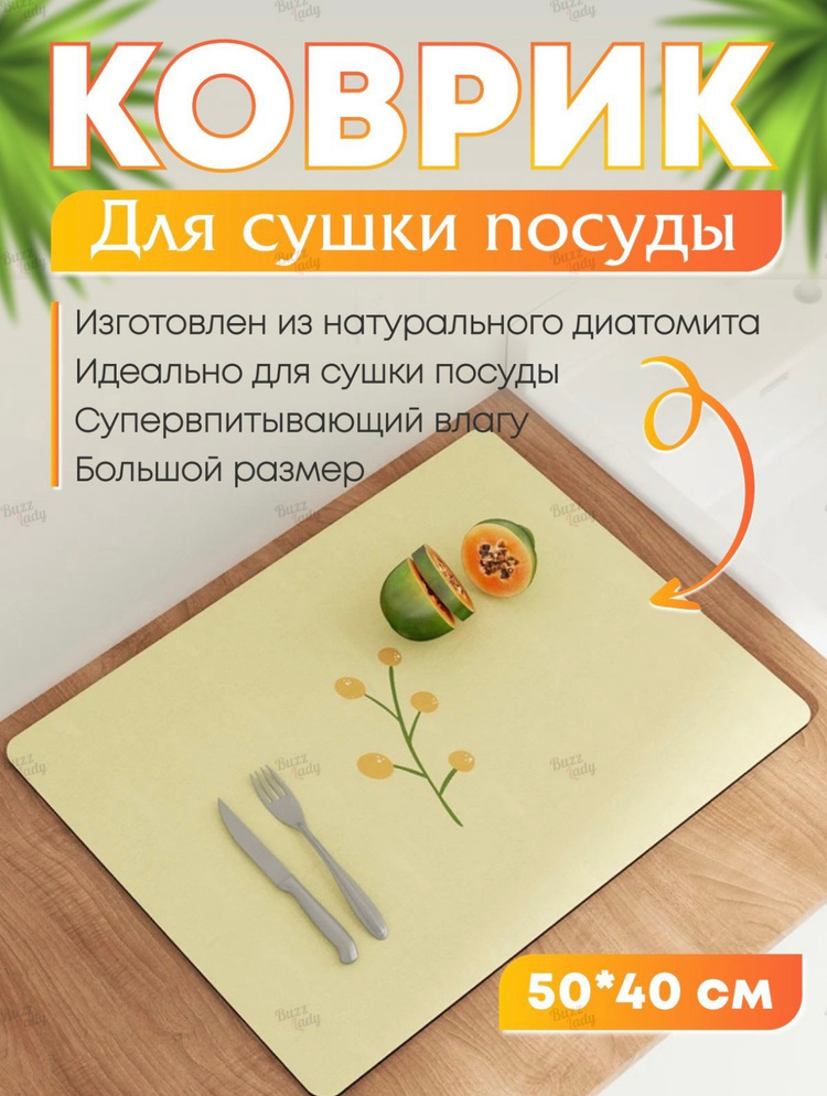 коврик для сушки посуды из натурального диатомита отлично впитывает влагу, быстро сохнет, не пахнет.
